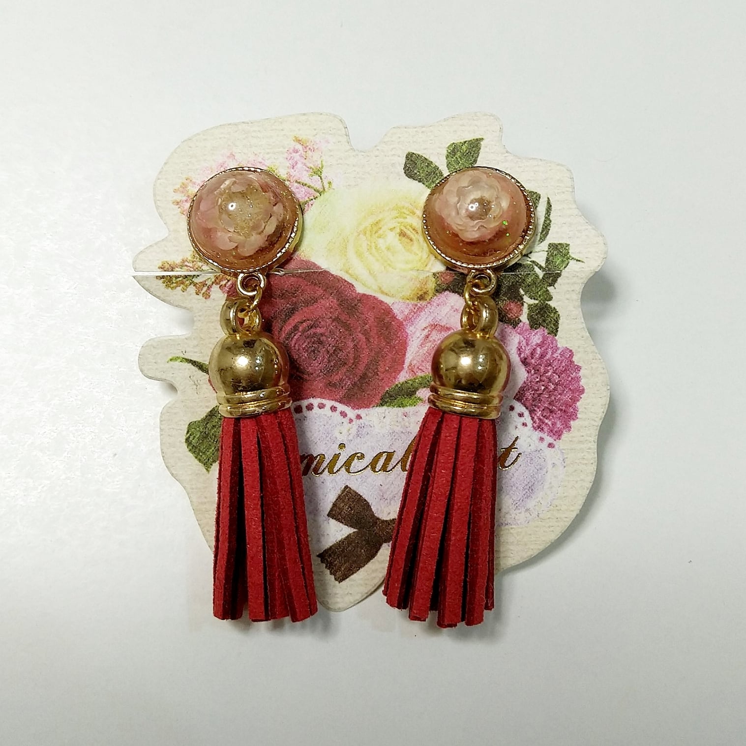 ピンクのお花をレジンで閉じ込め、タッセルを付けました。
