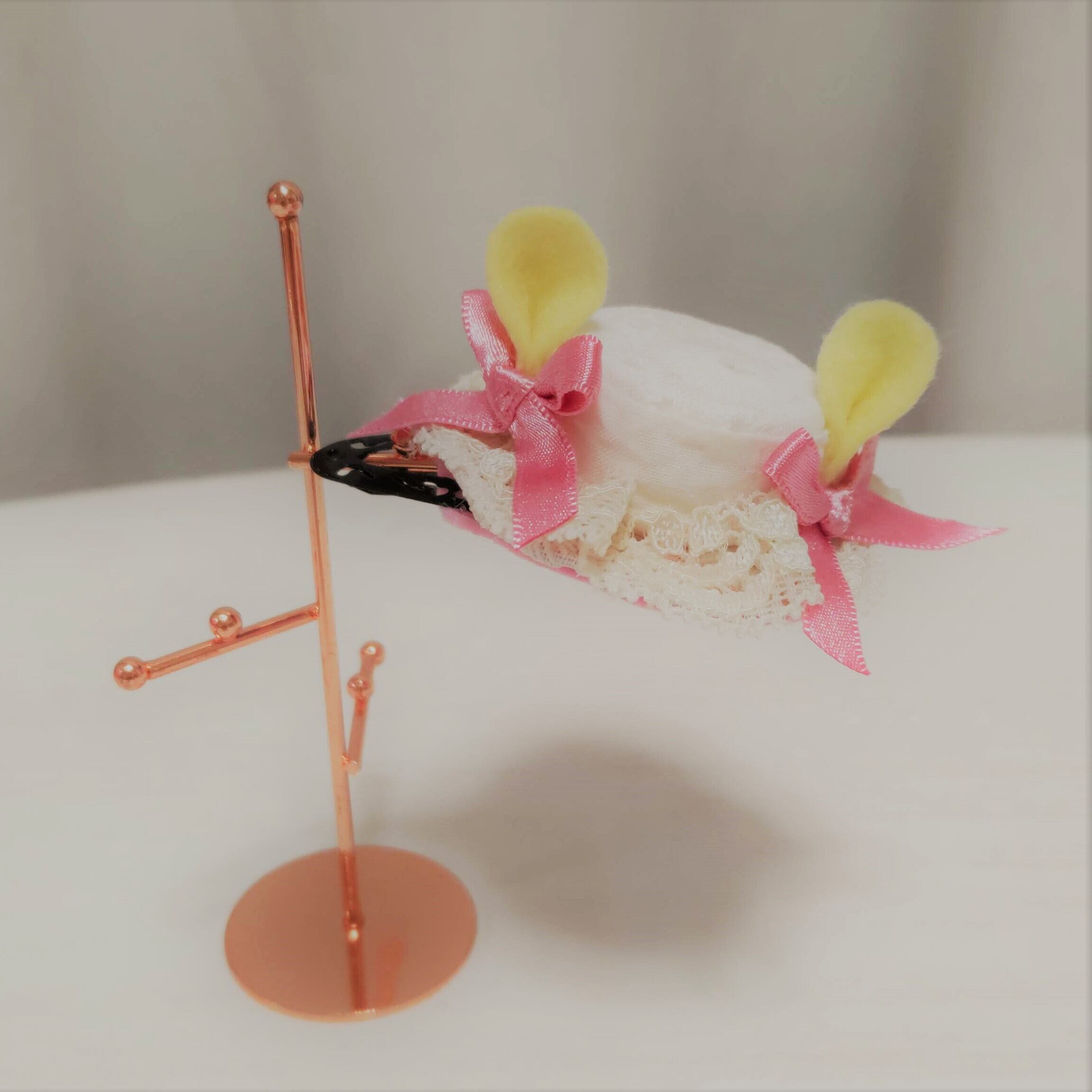 うさぎの耳が可愛い、帽子のヘアピンになりました♪