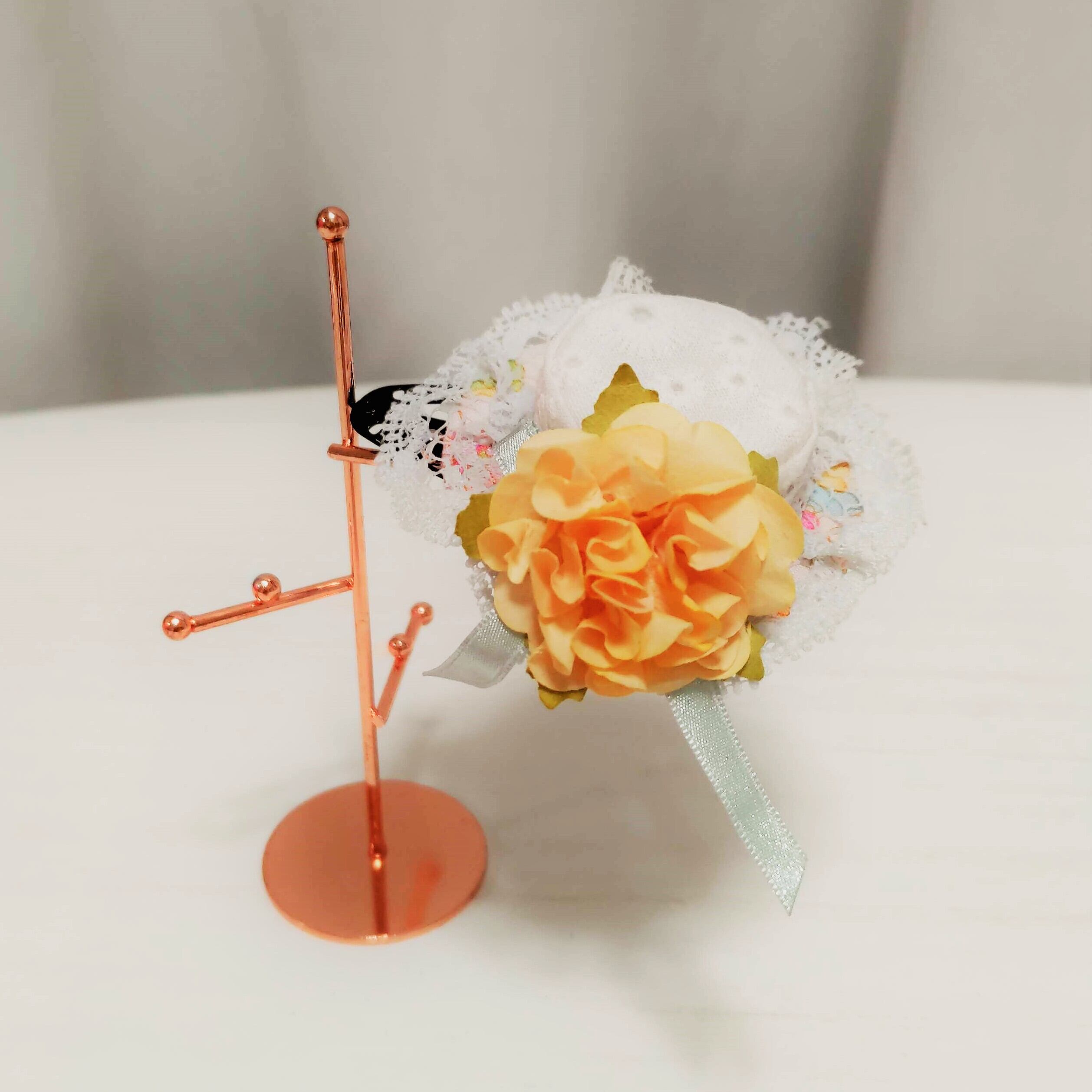 ライトブルーのリボンにイエローのお花が鮮やかな、帽子のヘアピンになりました♪